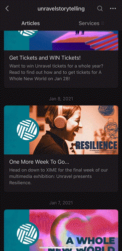 Unravel presented RESILIENCE - a multimedia storytelling exhibition featuring portraits and audio recordings. In charge of creating and supervising the the visual experience of the exhibit - starting from devising the graphic identity of the event to the final steps of producing and installing the supporting materials.