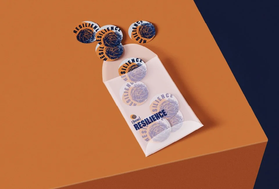 The concept of the exhibition was inspired by the already recognisable pièce de résistance of the Unravel identity - the yarn ball. By making full use of the familiarity and dynamic nature of this yarn ball, the visual identity bands together the theme of the exhibition - RESILIENCE - with the Unravel image.